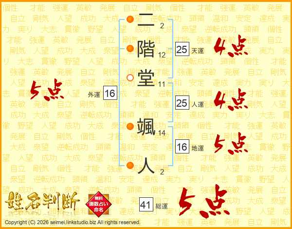 二階堂颯人さんの総運は41画の5点!