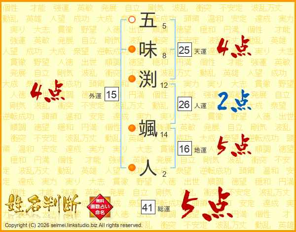 五味渕颯人さんの総運は41画の5点!