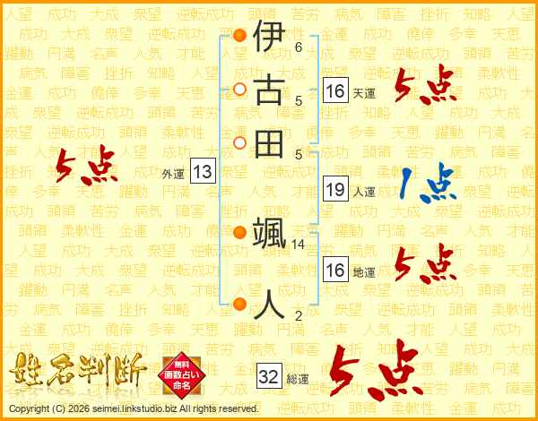 伊古田颯人さんの総運は32画の5点!