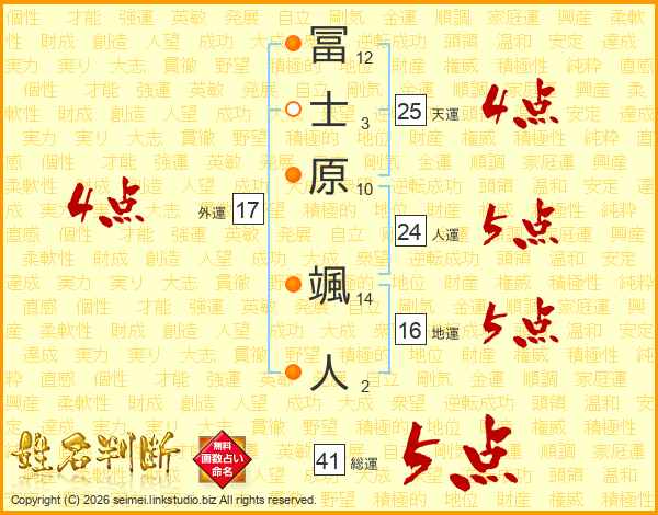 冨士原颯人さんの天運は25画の4点!
