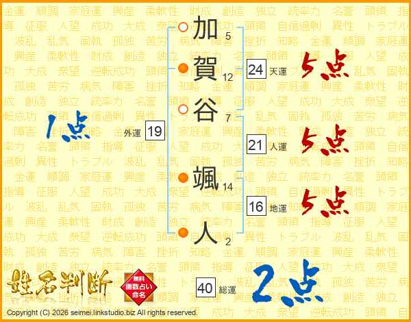 加賀谷颯人さんの総運は40画の2点!