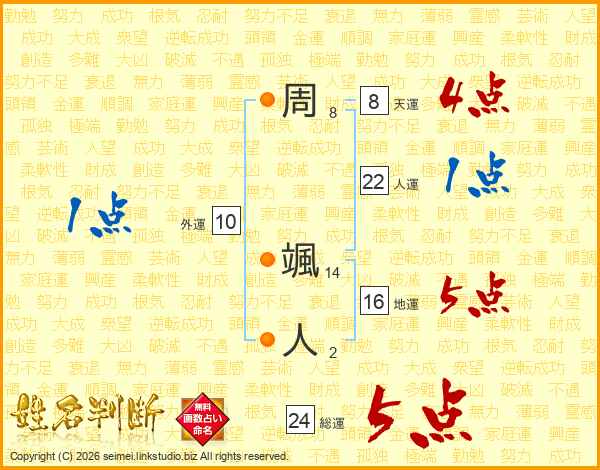 周颯人さんの人運は22画の1点!