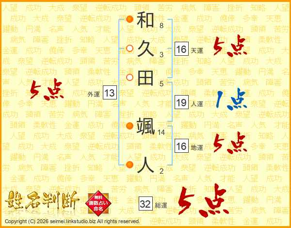 和(8画)久(3画)田(5画) 颯(14画)人(2画)