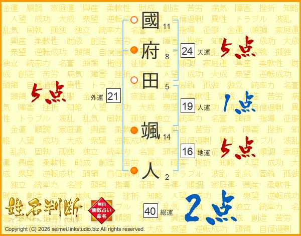 國府田颯人さんの外運は21画の5点!