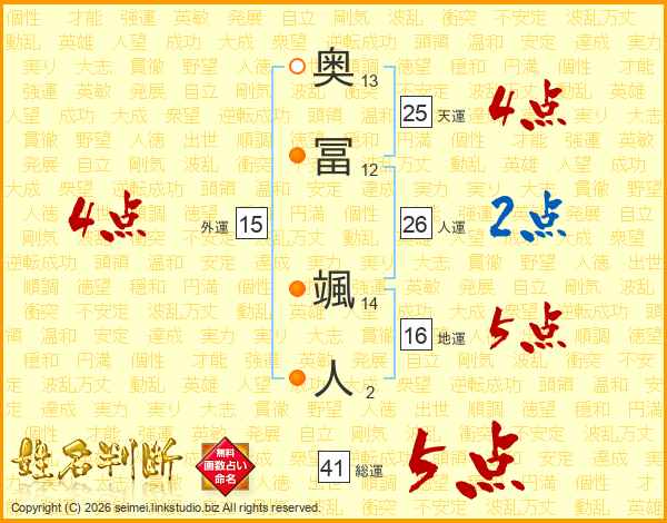 奥冨颯人さんの総運は41画の5点!