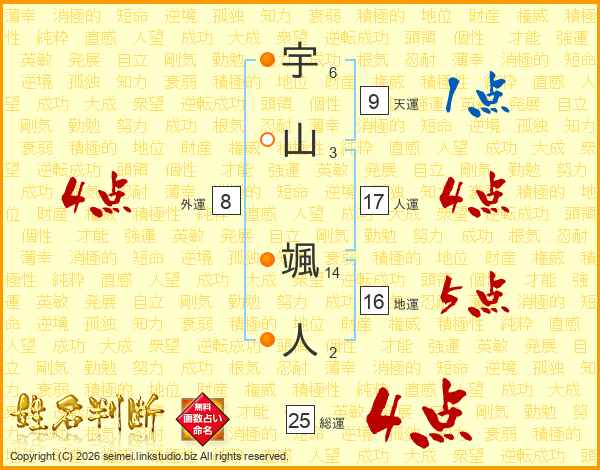 宇山颯人さんの人運は17画の4点!