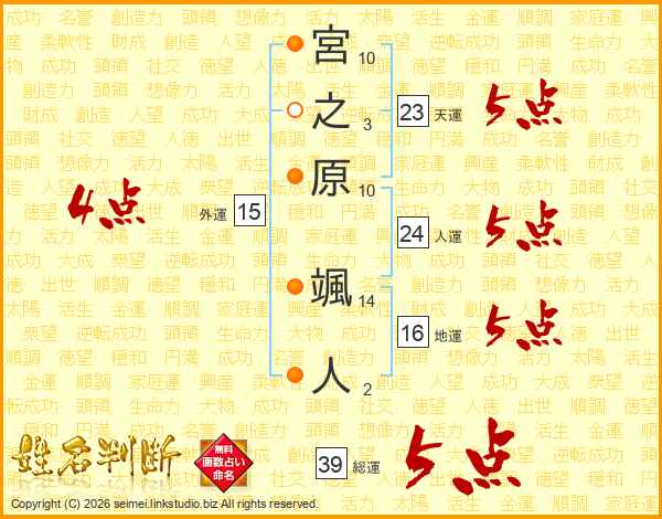 宮之原颯人さんの総運は39画の5点!
