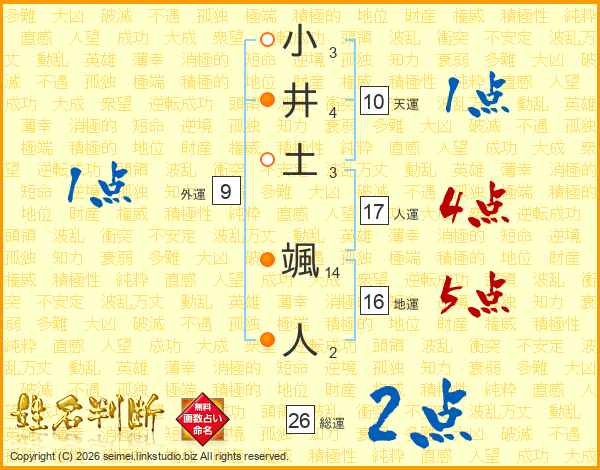 小井土颯人さんの総運は26画の2点!