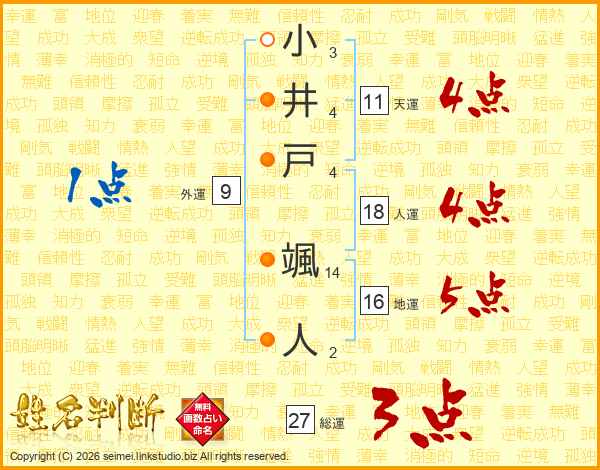 小(3画)井(4画)戸(4画) 颯(14画)人(2画)
