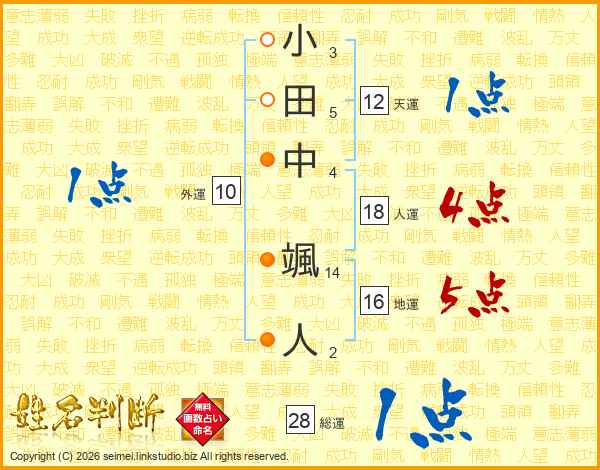 小田中颯人さんの総運は28画の1点!