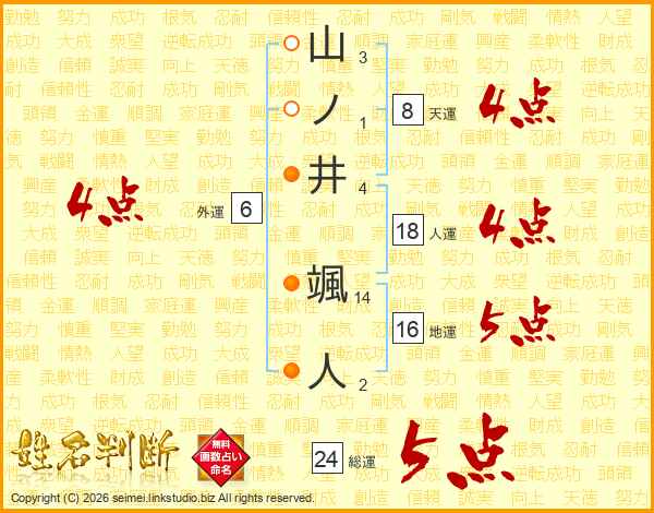 山ノ井颯人さんの人運は18画の4点!