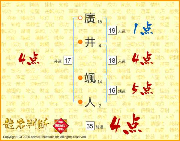廣井颯人さんの総運は35画の4点!