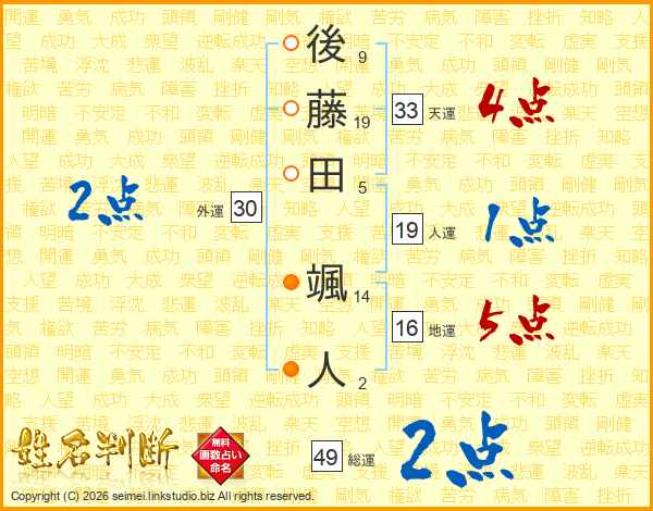 後藤田颯人さんの総運は49画の2点!