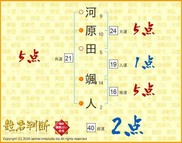 河原田颯人さんの外運は21画の5点!