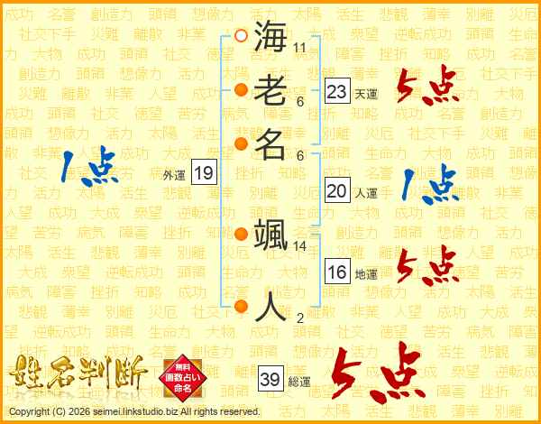 海(11画)老(6画)名(6画) 颯(14画)人(2画)