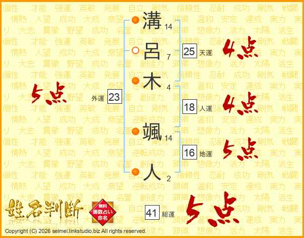 溝呂木颯人さんの外運は23画の5点!