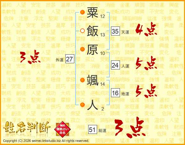 粟飯原颯人さんの人運は24画の5点!