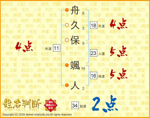舟久保颯人さんの人運は23画の5点!
