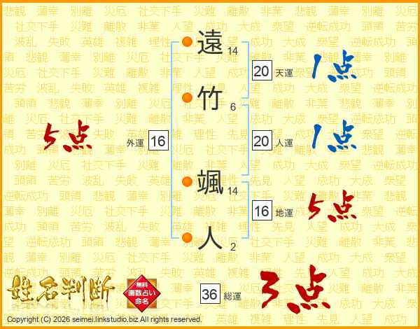 遠竹颯人さんの総運は36画の3点!