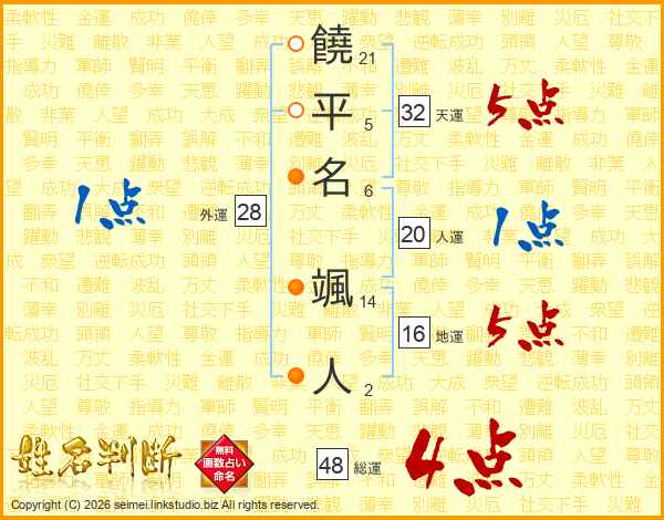饒(21画)平(5画)名(6画) 颯(14画)人(2画)