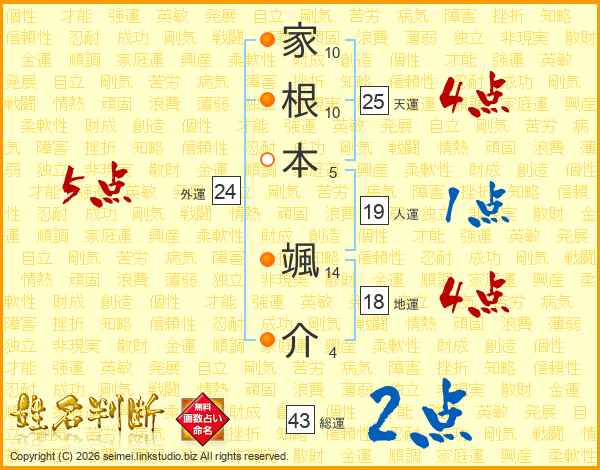 家(10画)根(10画)本(5画) 颯(14画)介(4画)