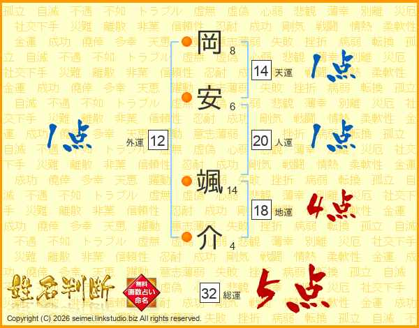 岡安颯介さんの総運は32画の5点!