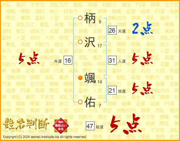 柄沢颯佑さんの総運は47画の5点!