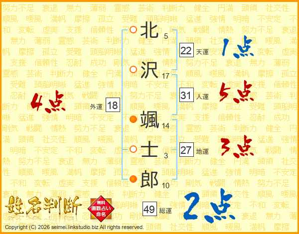 北沢颯士郎さんの人運は31画の5点!