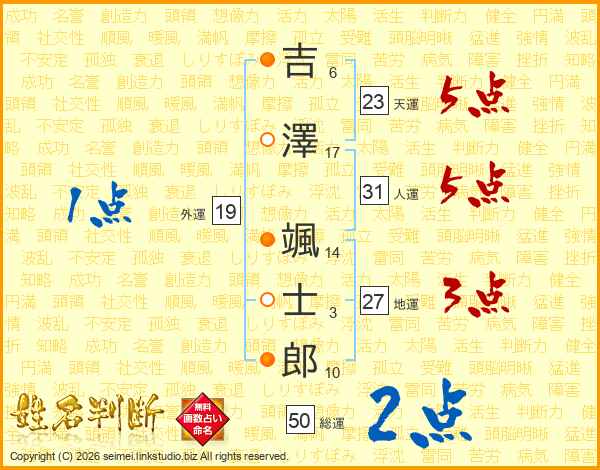 吉澤颯士郎さんの天運は23画の5点!