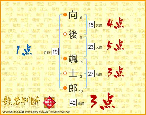 向後颯士郎さんの天運は15画の4点!