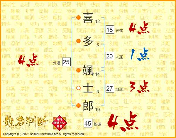 喜多颯士郎さんの総運は45画の4点!