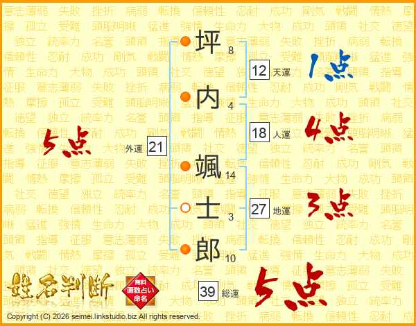 坪内颯士郎さんの総運は39画の5点!