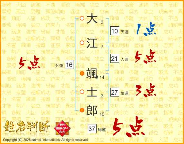 大(3画)江(7画) 颯(14画)士(3画)郎(10画)
