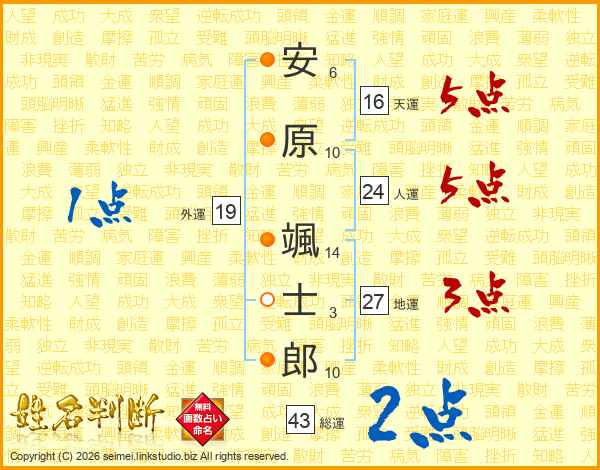 安原颯士郎さんの人運は24画の5点!