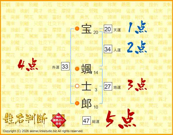 宝颯士郎さんの総運は47画の5点!