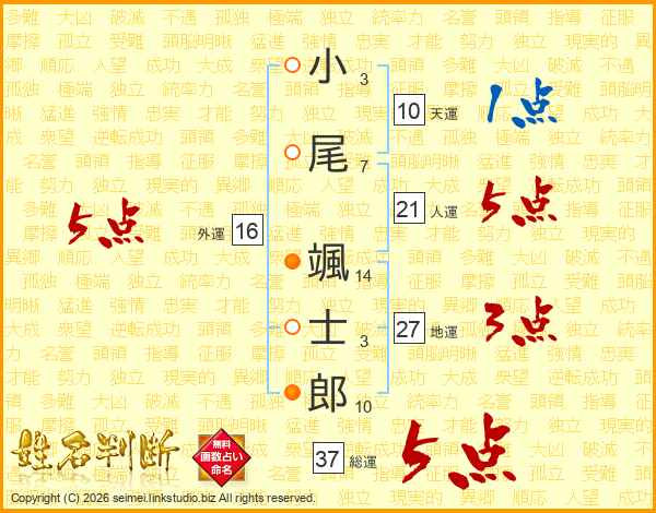 小尾颯士郎さんの総運は37画の5点!