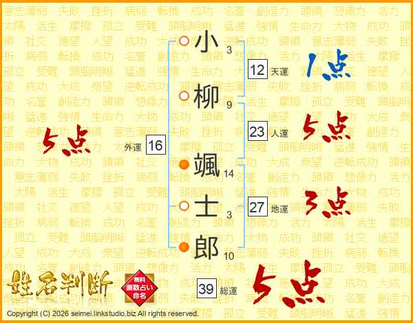 小柳颯士郎さんの総運は39画の5点!