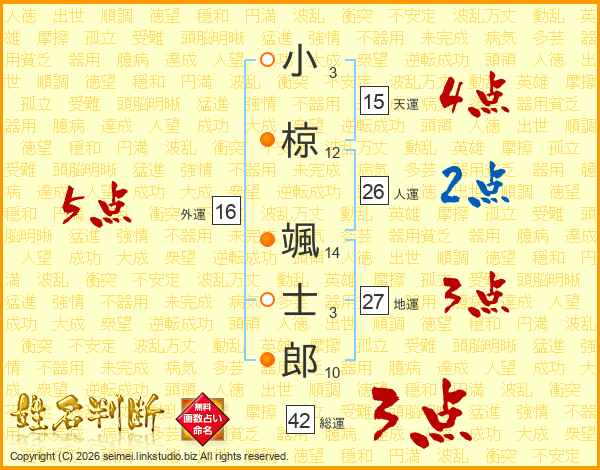 小椋颯士郎さんの総運は42画の3点!