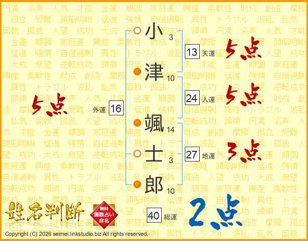 小津颯士郎さんの人運は24画の5点!