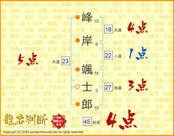 峰(10画)岸(8画) 颯(14画)士(3画)郎(10画)