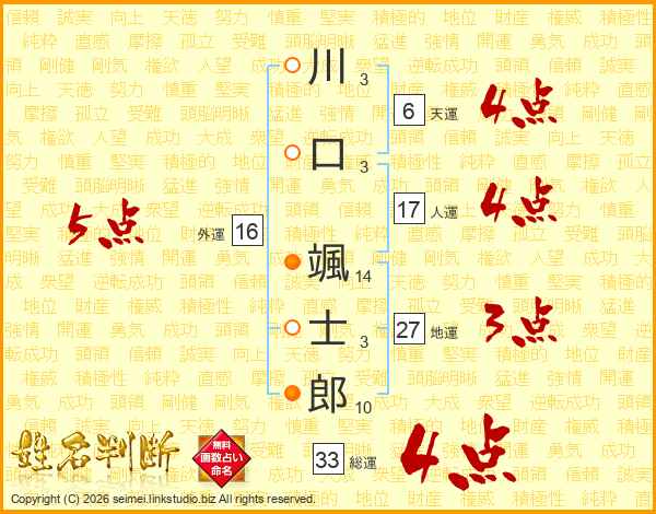 川口颯士郎さんの総運は33画の4点!