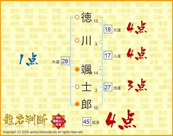 徳川颯士郎さんの総運は45画の4点!