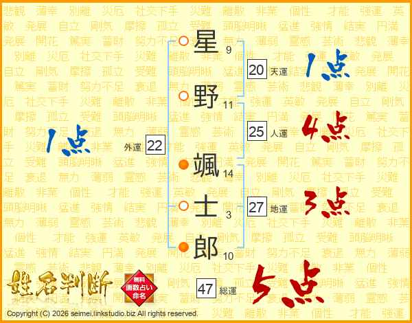 星野颯士郎さんの総運は47画の5点!