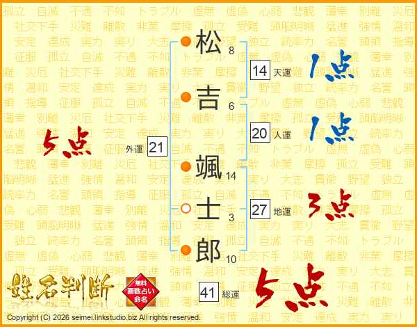 松(8画)吉(6画) 颯(14画)士(3画)郎(10画)