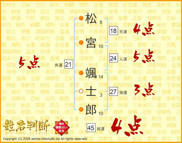 松宮颯士郎さんの総運は45画の4点!