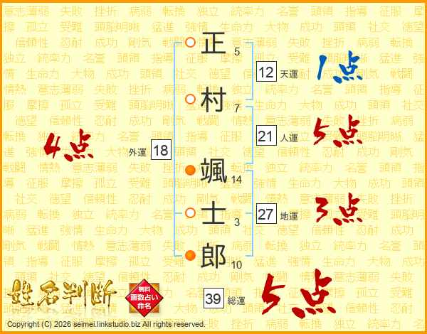 正村颯士郎さんの総運は39画の5点!
