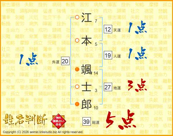 江本颯士郎さんの総運は39画の5点!