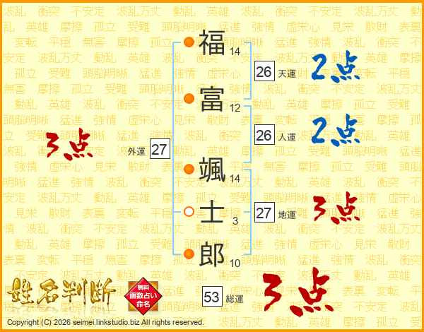 福(14画)富(12画) 颯(14画)士(3画)郎(10画)