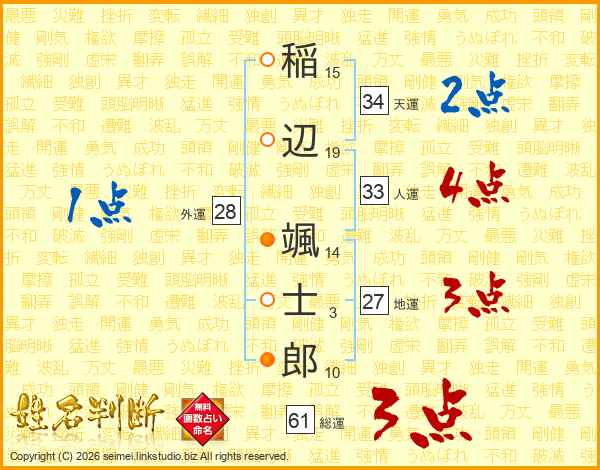 稲辺颯士郎さんの天運は34画の2点!