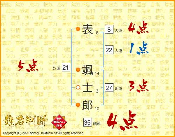 表颯士郎さんの総運は35画の4点!